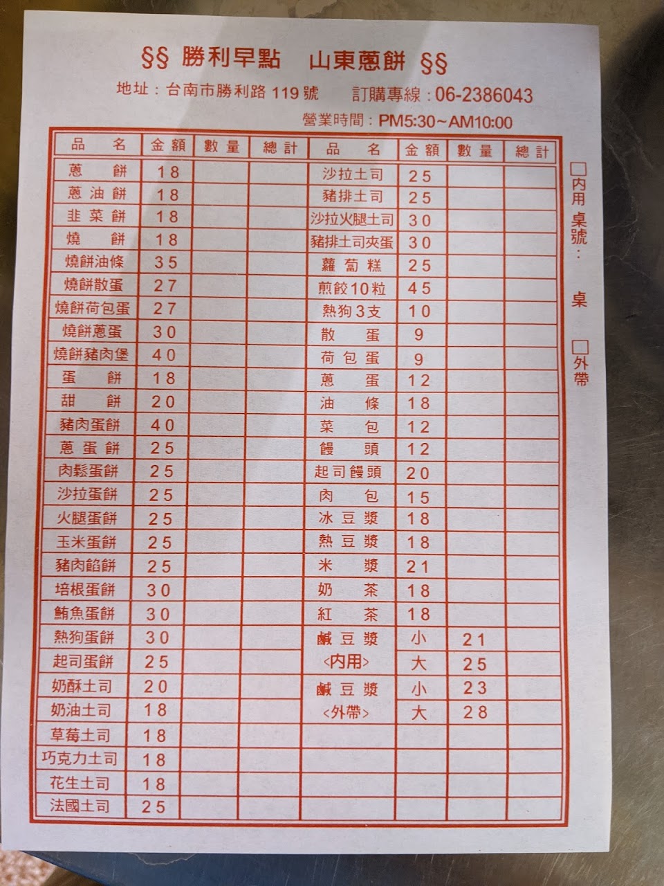 2024最新在地推薦餐廳的菜單_勝利早點的菜單、圖片