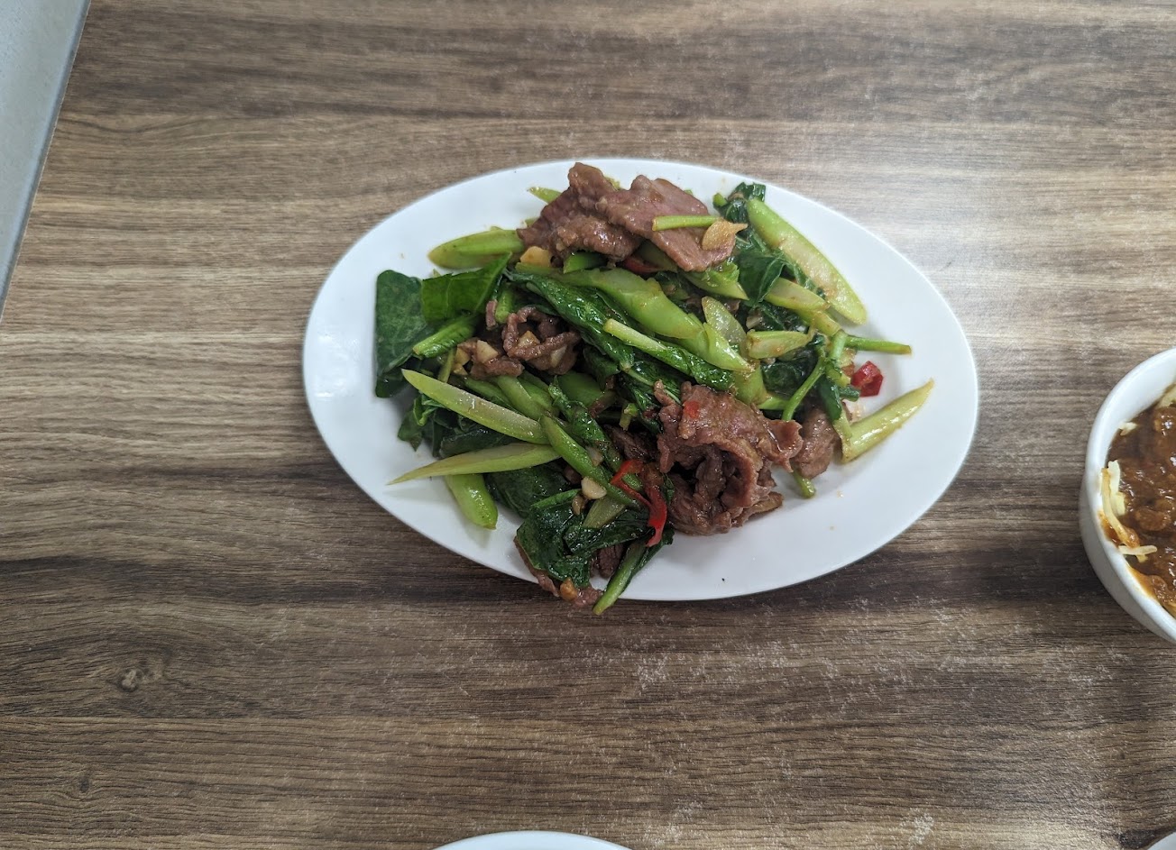 點了一個牛肉湯以及芥蘭炒牛肉,有送一個白飯可以淋牛肉燥。