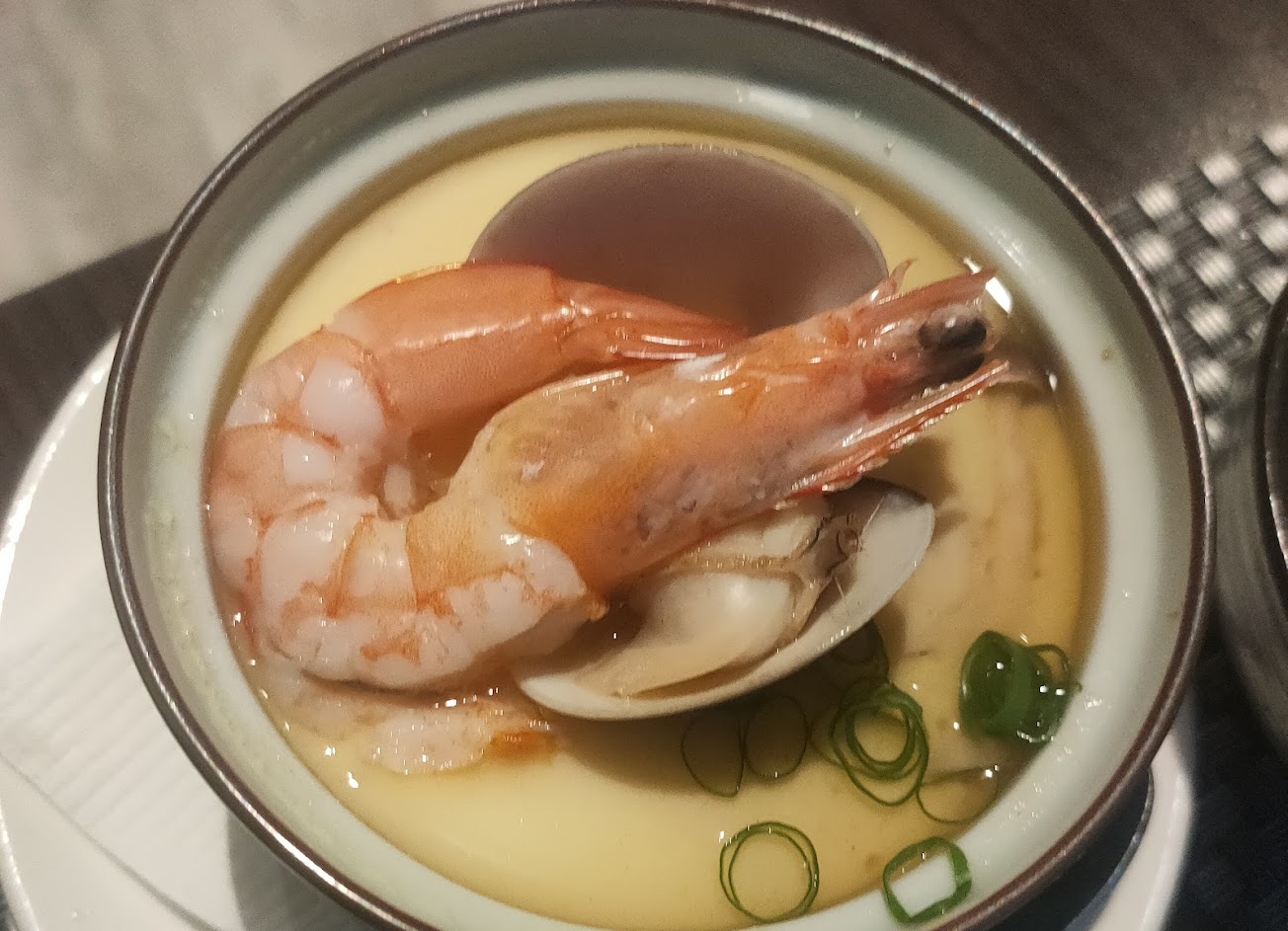 7.茶碗蒸90$用柴魚高湯現蒸(應該是),需要等候大概15分鐘,內容大概有魚板1、蝦子1(一樣很Q彈而且是撥好殼的)、蛤蠣1(想知道蛤蠣到底有多肥也可以點這道)、雞肉1(好吃不柴Q彈),湯喝起來很好喝