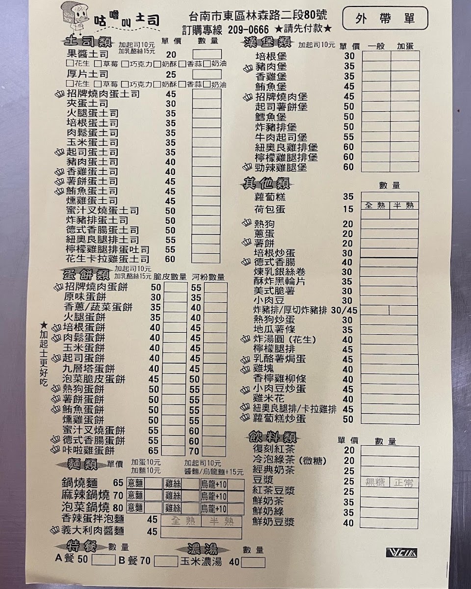 2024最新在地推薦餐廳的菜單_咕嚕叫土司(林森店)的菜單、圖片
