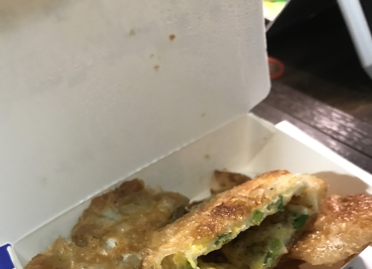外帶脆皮起司蛋餅,一打開食物,超黑,還敢出餐。