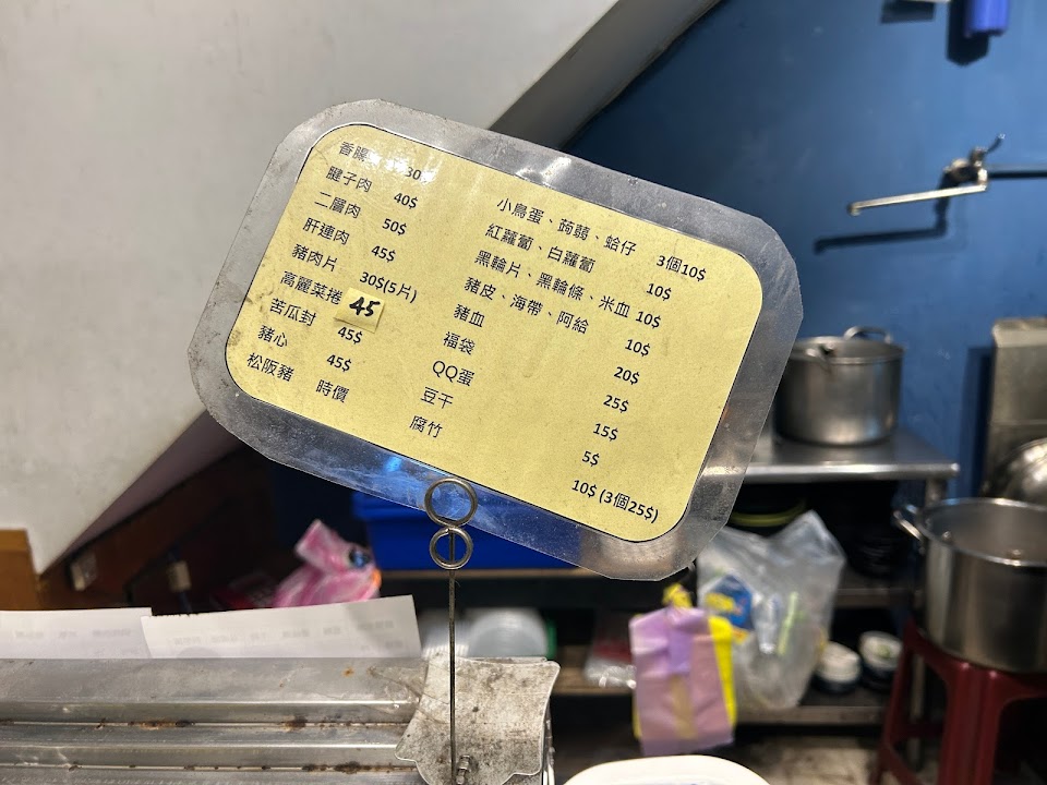 湯不錯 不過米血不是我愛的(不夠軟較硬) 菜頭沒透(也不是我愛的,有的人喜歡) 麵算好吃,還可以~ 其實我不太明白點菜單的 關東煮自取 但 要取的時候不一定會有 這樣算錢不累嗎? 客人點菜也會覺得怪怪的 店面的菜單不是每個都有價格… 老闆娘是不用陪笑 不過服務上很難明白老闆娘的語氣想講什麼