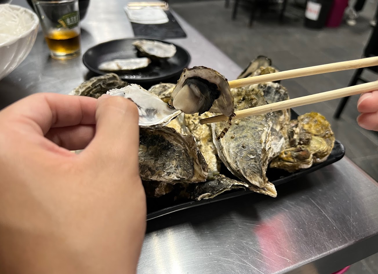雖然說150元吃先蚵好像很划算,但真的去過才發現網路評價應該是被洗出來的,殼都沒洗很髒,也不是影片中那麼大顆,我門兩個人吃完都拉肚子….身體健康比較重要,寧願花多一點錢吃別間處理乾淨的海鮮!!!一到二樓感覺煙霧瀰漫,然後烤節瓜吃起來也不優(第一次吃到這麼不ok的)茶碗蒸也是吃起來普通(不建議點)…