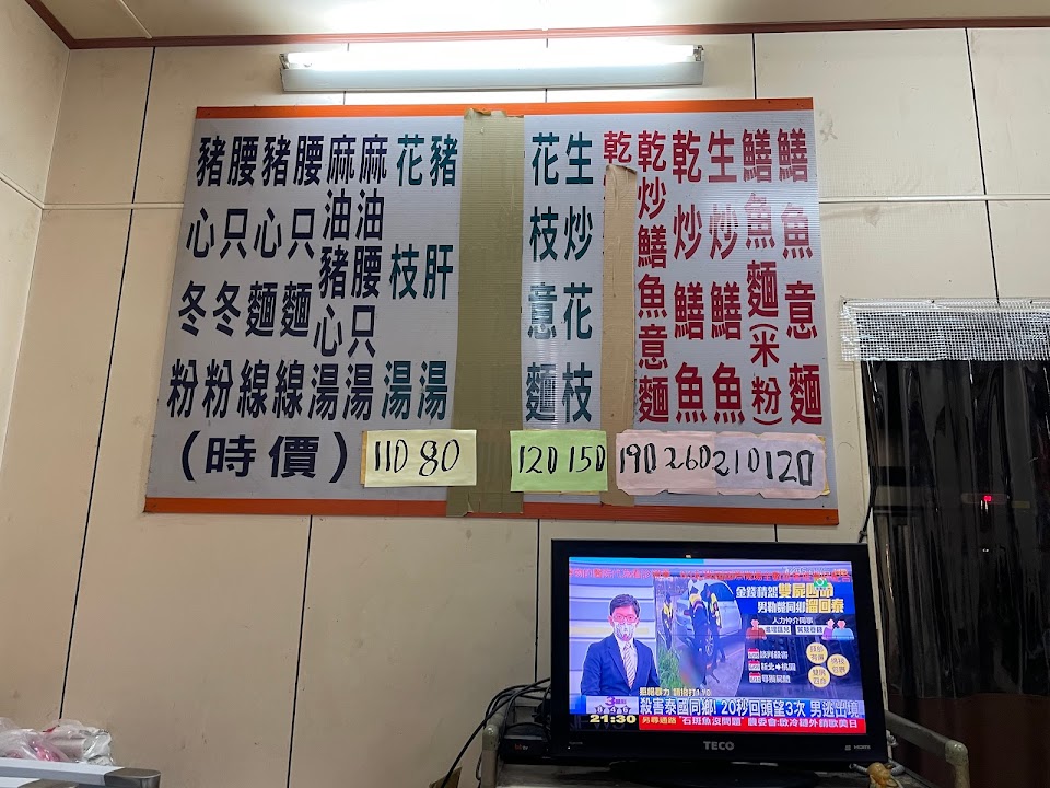 乾炒鱔魚意麵, 麻油腰只湯, 麻油豬心湯, 炒鱔魚意麵 濕, 生炒花枝, 炒鱔魚 麻油腰子