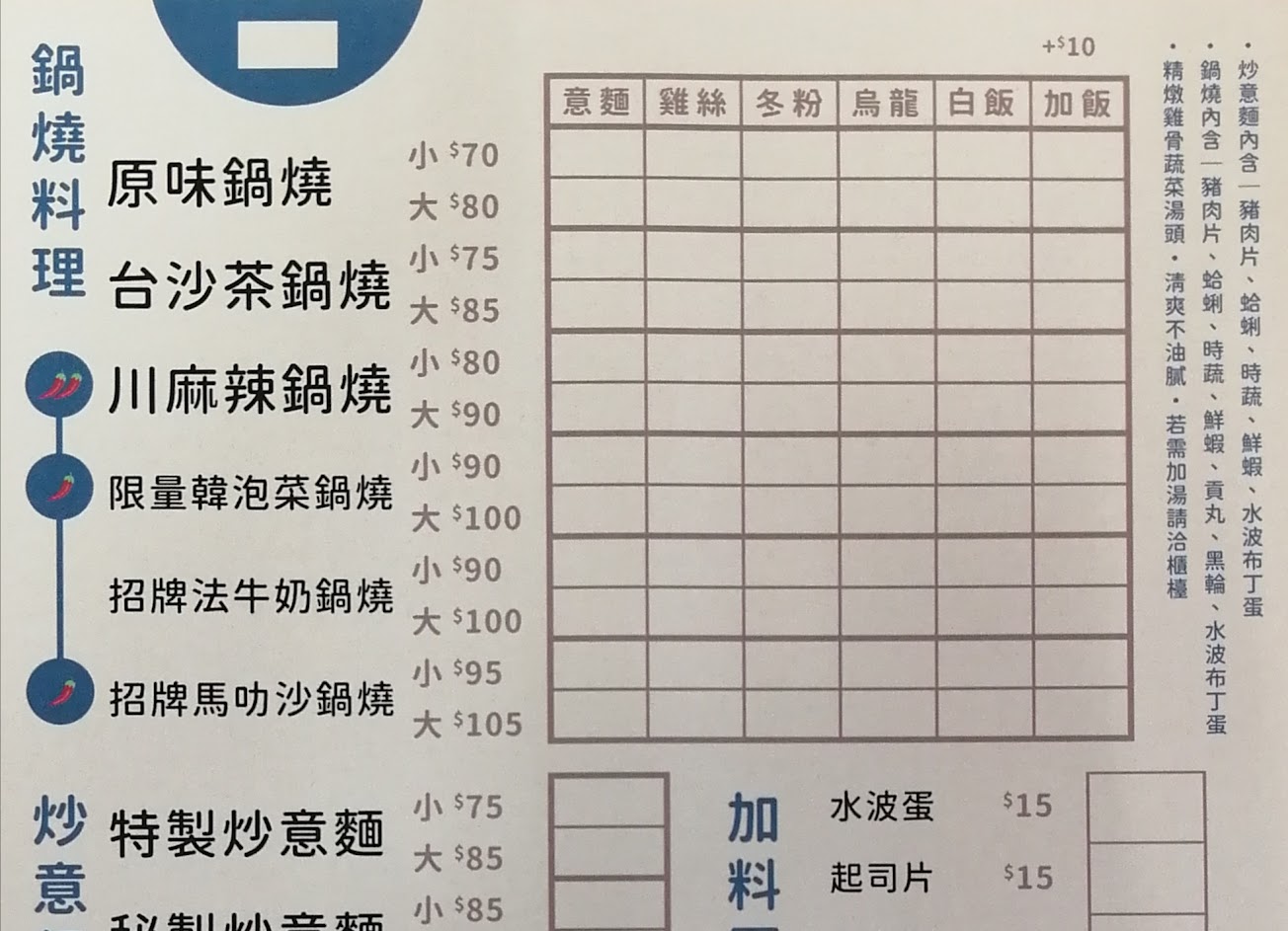 鍋燒 為主, 麵、 飯 ,分 乾及 湯。
