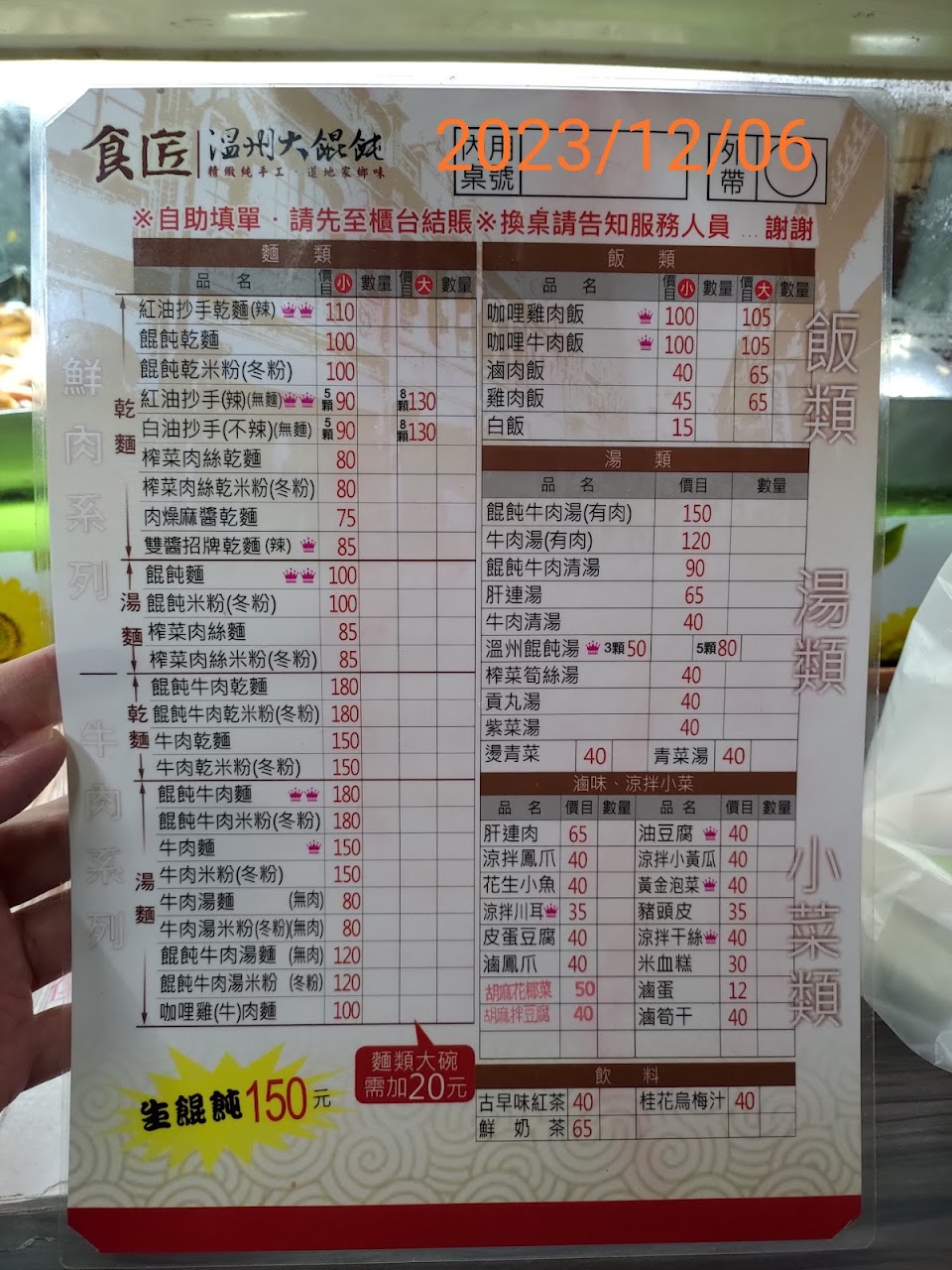 2024最新在地推薦餐廳的菜單_食匠溫州大餛飩-三峽總店的菜單、圖片