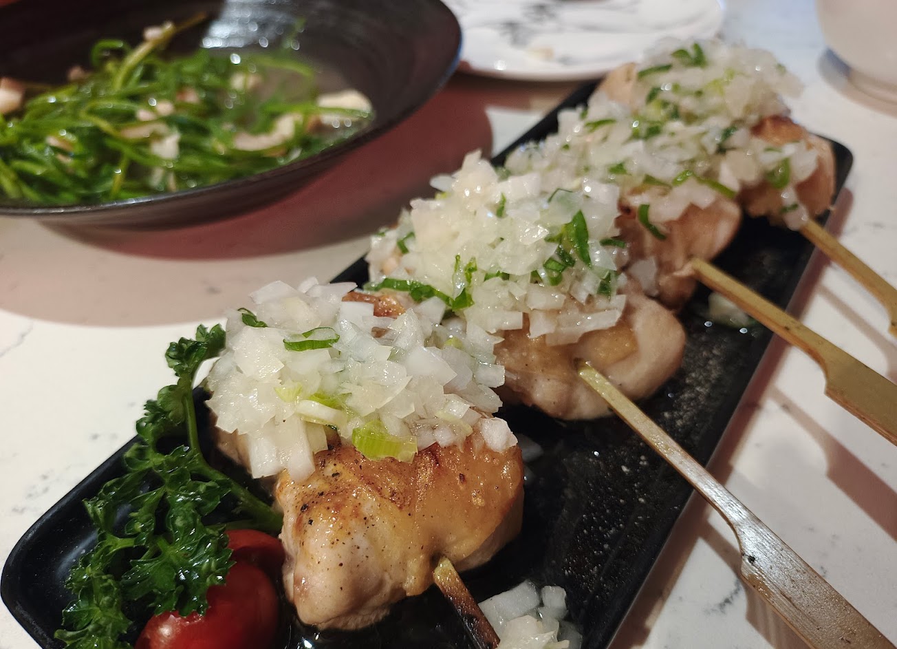 月見鹽蔥飯, 烤節瓜, 烤雞肉串