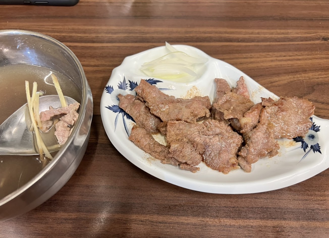 第一次去吃,點了牛肉湯與燙青菜,牛肉湯真的非常好喝美味,牛肉熟度恰到好處!