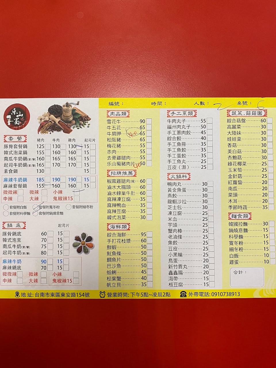 2024最新在地推薦餐廳的菜單_乐山蜀麻辣鍋的菜單、圖片