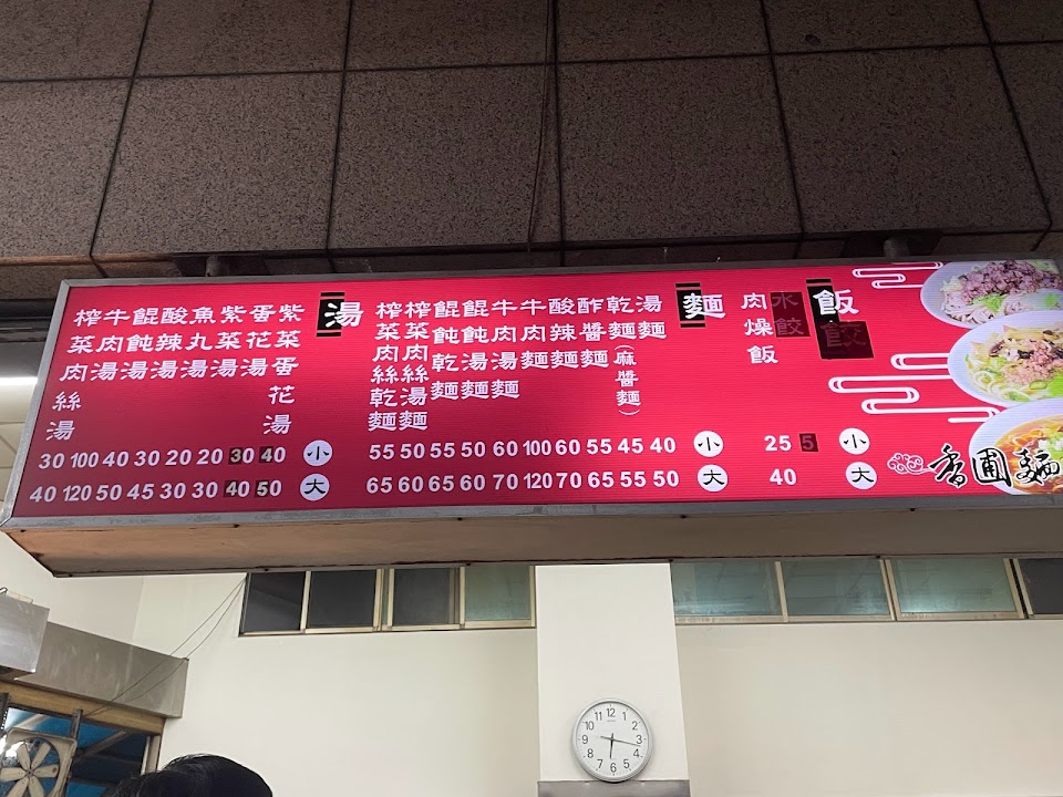 酸辣湯, 餛飩麵, 榨菜肉絲乾麵, 麻醬乾麵