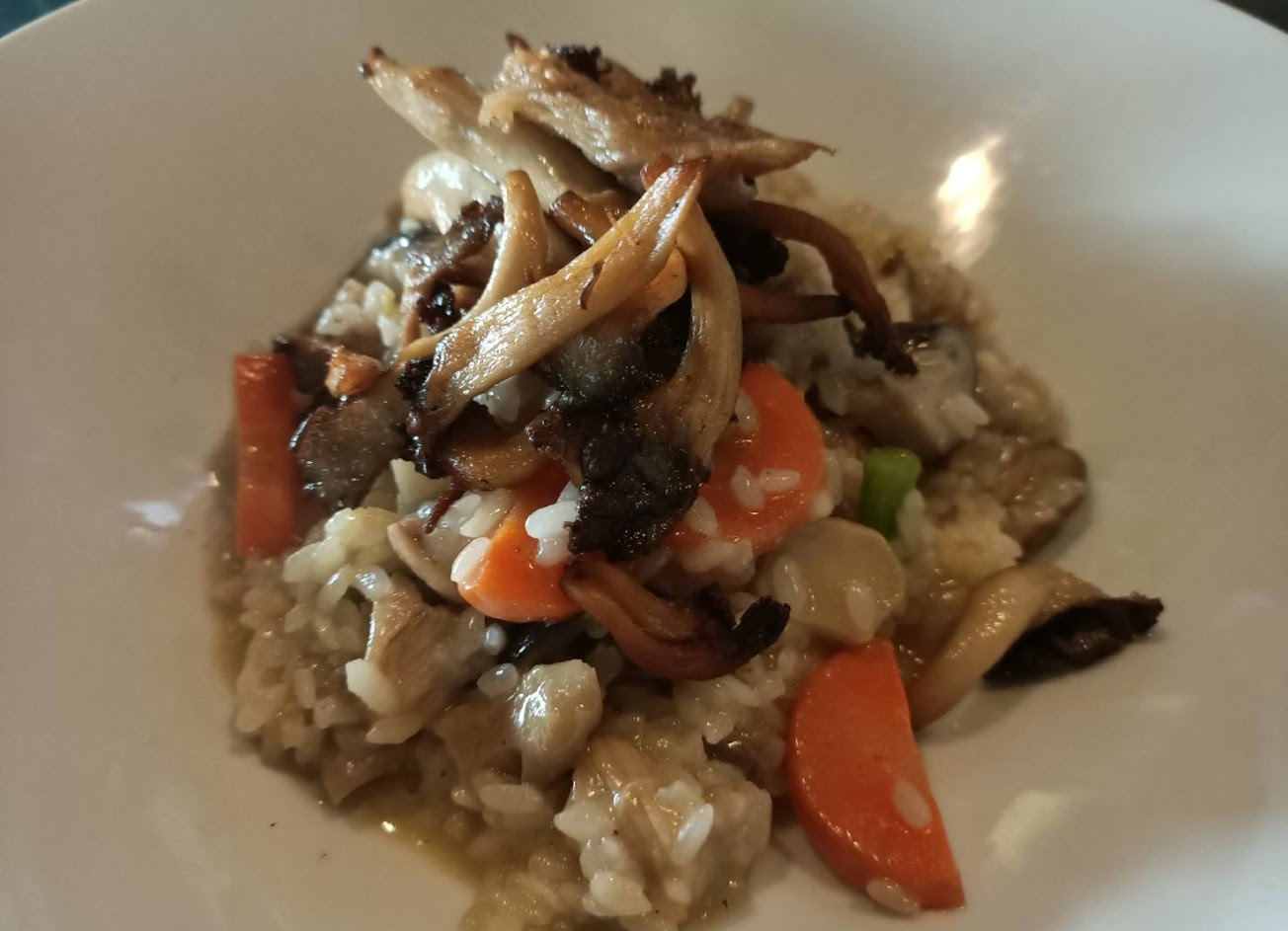 這次的燉飯醬汁的多層次與深度,搭配最上面烤過的菇菇與各種蔬菜甜味與不同口感交織,用料大方,每口都幸福都有不同滋味!