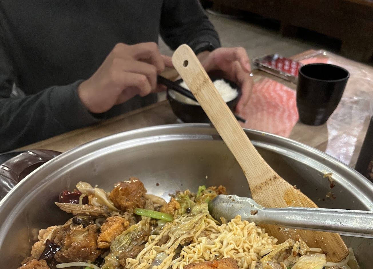 炒的非常香,算是滿好吃的,但其實算起來價格有點貴,自己吃一份感覺很不划算,可以大家一起來點一鍋吃,我們點了四人鍋,但其實內容的肉不多,大部分是其他料,而且店內有公告打卡可以送一包科學麵,店員竟然說四人餐已經很便宜了不能打卡送麵… 就一包麵而已不會很貴吧? 就因為點套餐不能送一包麵感覺實在有點差…