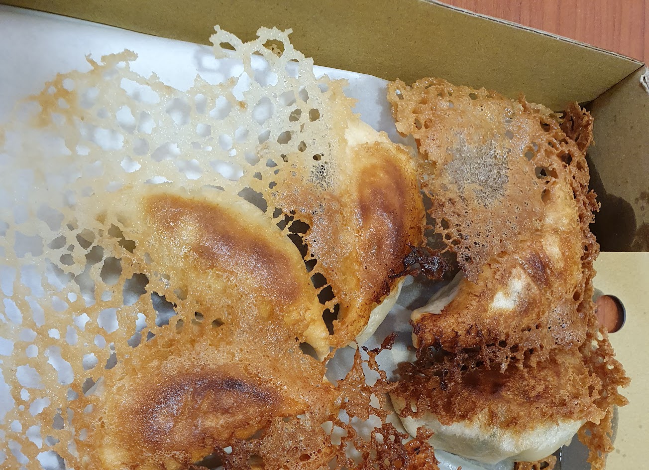 #鍋貼我還好 #脆皮邊邊有點硬 #餃皮蠻Q的 #內餡多汁但餡料感糊糊的 #但朋友很喜歡