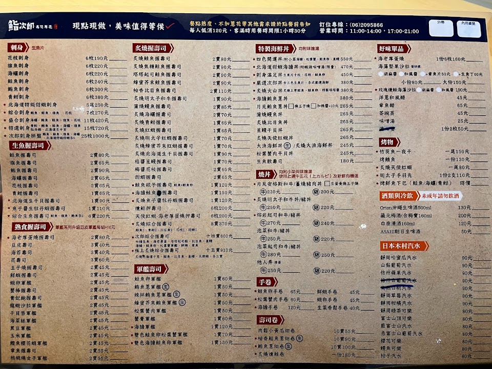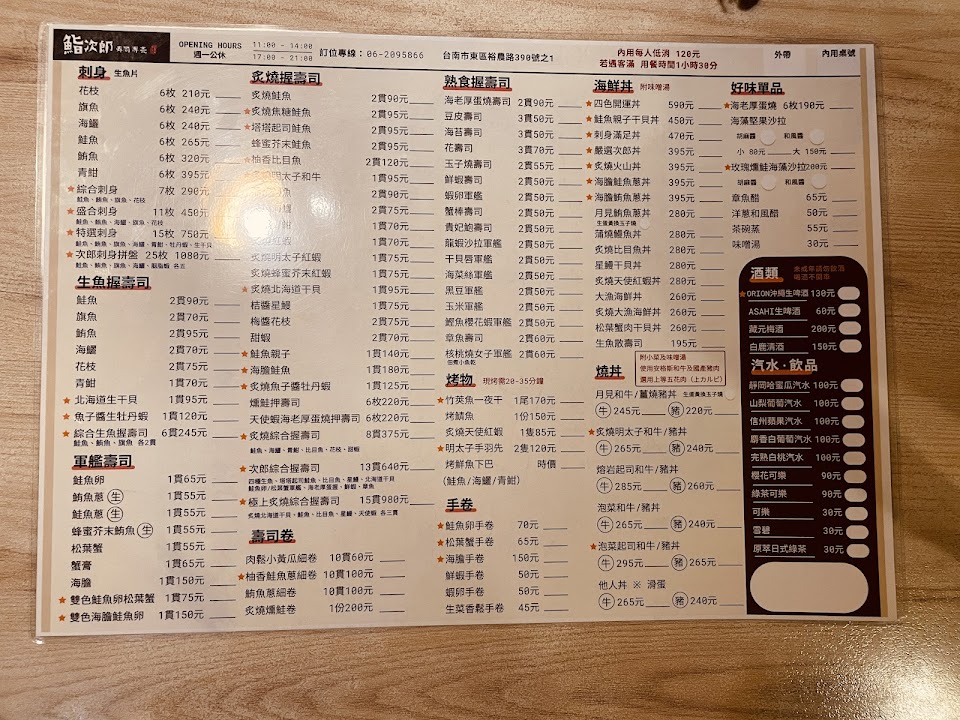 2024最新在地推薦餐廳的菜單_鮨次郎壽司專賣的菜單、圖片
