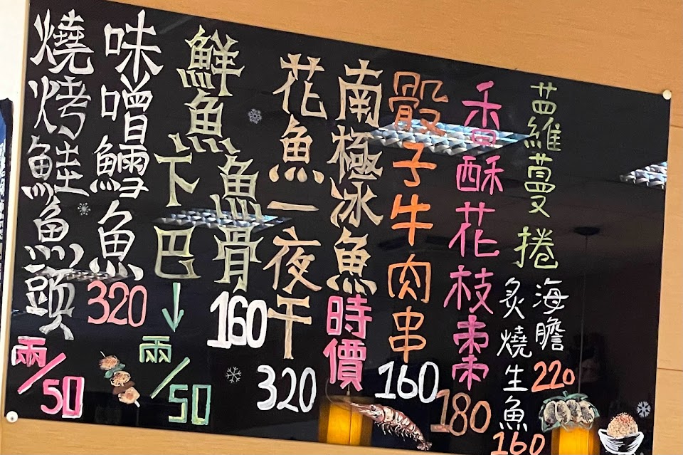 餐點有中上水準,海鮮類新鮮度值得推薦。店裡放的動漫歌曲,一首比一首熱血,大幅提升了用餐的速度。