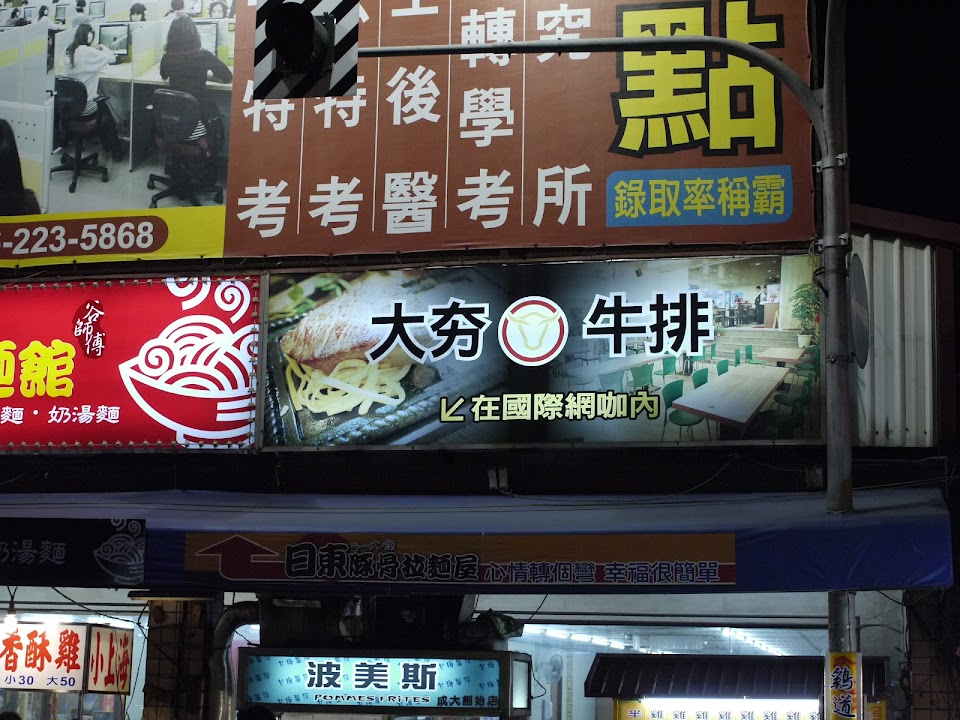 夜市牛排 不至於太差 , 但店內一堆告示 看的有點不耐煩 , 店內擺設也是很有趣的賣點