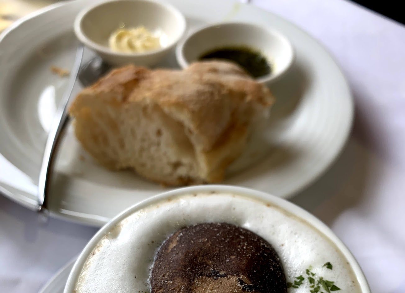 但樸實無華麵包很撫慰人心 沾點青醬跟奶油 麵包烤的微溫表皮微脆內鬆軟恰當好處