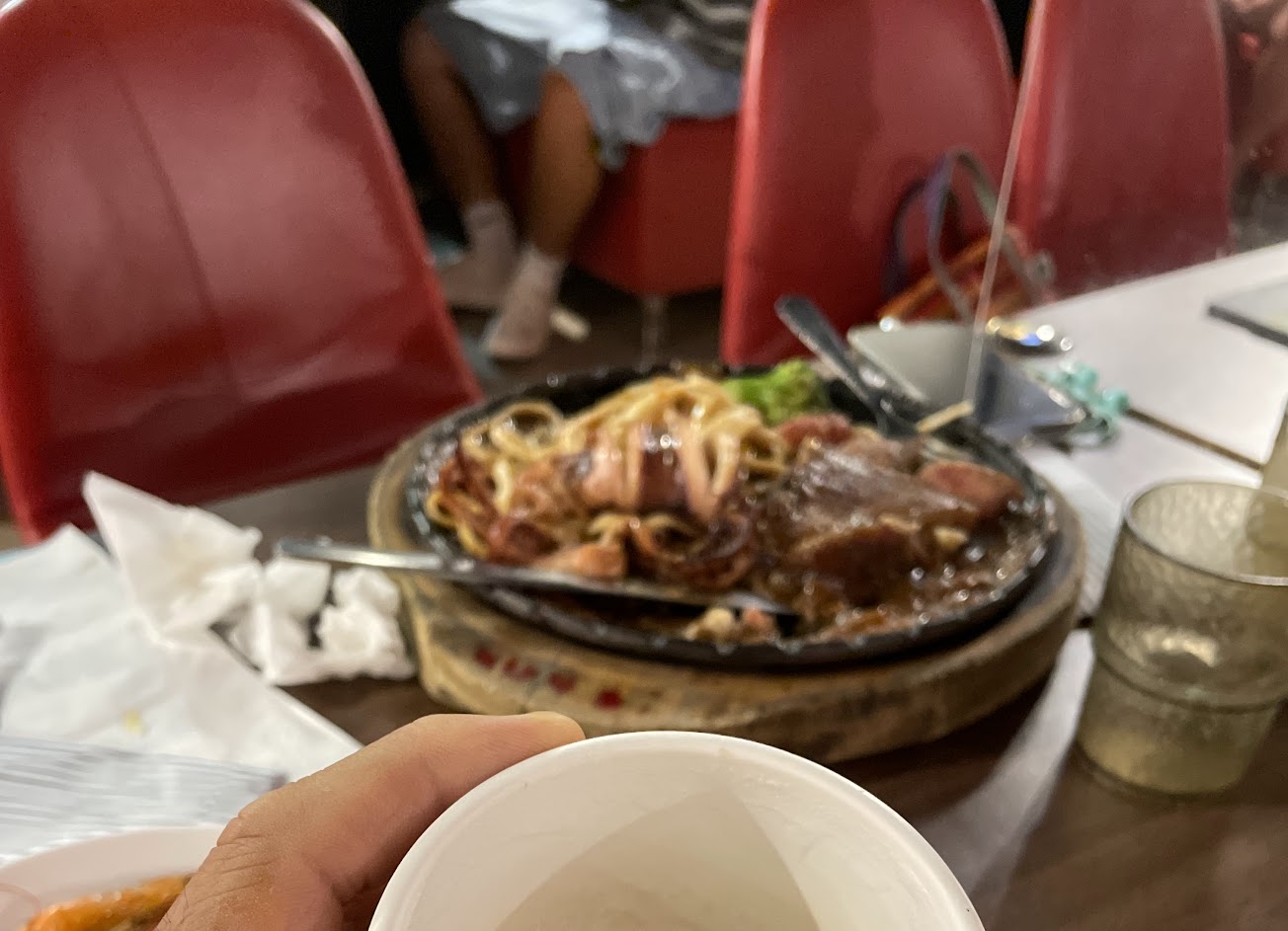 地板黏黏的,送餐人員橫衝直撞還踩到我,重點是吃完出來真的從頭到腳都是排餐的味道…