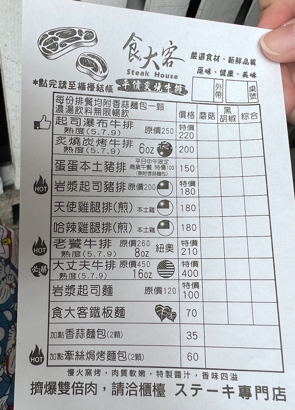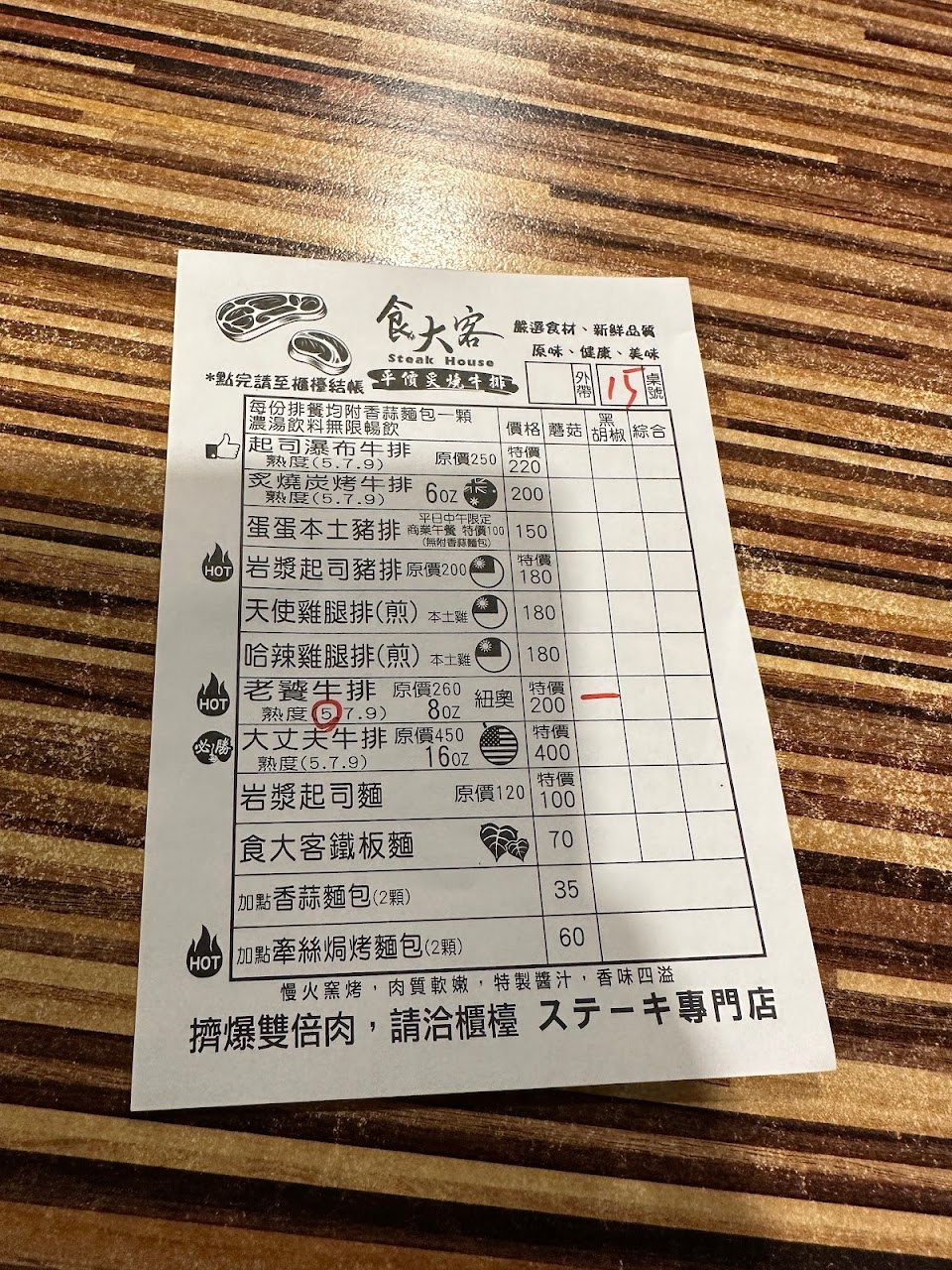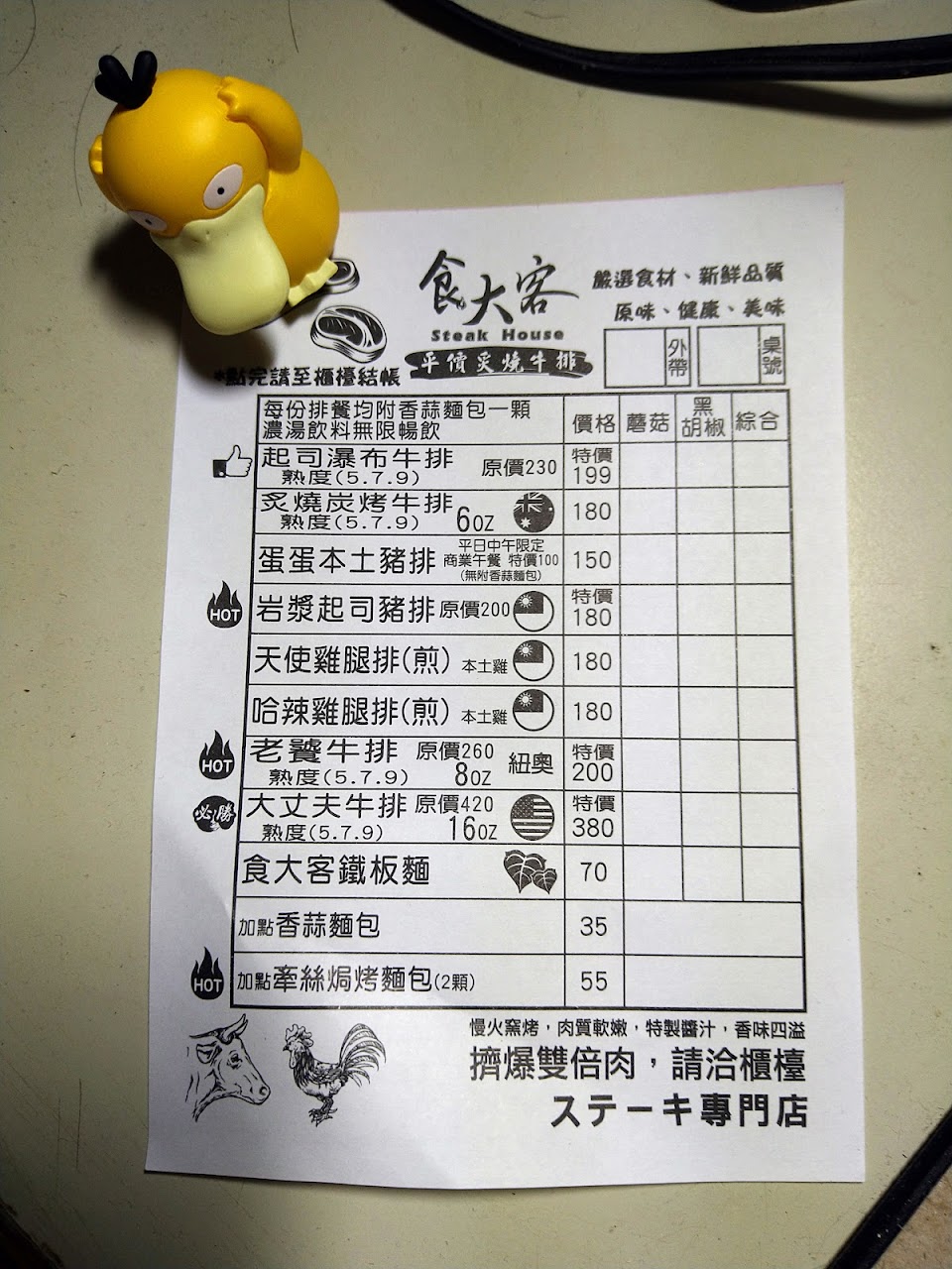 2024最新在地推薦餐廳的菜單_食大客平價炙燒牛排的菜單、圖片