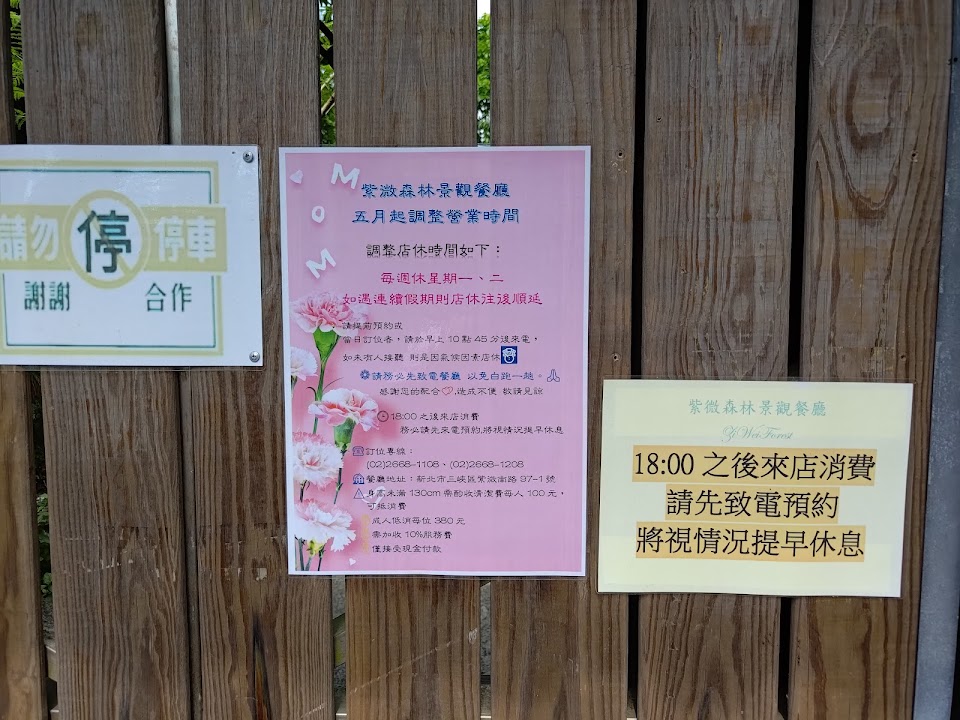 新春假期,陽光灑落,趁著年假的尾聲走訪期盼已久的紫微森林。沿途風光明媚,鳥語花香,沿著彎延的山路而上,現在正是櫻花滿開的季節,欣賞春天的景色是一種幸福。這裡停車場寬廣,環境整理的清爽舒適,服務人員親切客氣,落實防疫措施,假日客人超多,不過上餐速度很快,不會讓客人久等,餐點介紹也很詳盡。這裡適合全家大小前來走春,室內還設有兒童遊戲區,真的很貼心。用餐完畢可以走出户外欣賞一下遠眺市區的繁華,或前院花木扶疏的療癒感,更有户外坐位可供選擇,最值得一提的昰化妝室超級乾淨,看得出店家的細膩,值得推薦的休閒好去處!