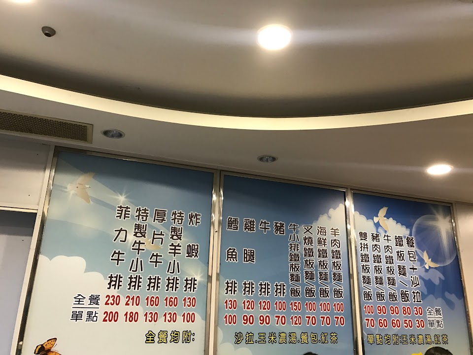這間牛排店的特色就是超級多的麵與超低的價位,來這邊一定能吃飽,而如果是點肉片類的鐵板麵,價格更是可以下探到60!而普通的排餐價格也是跟一般的牛排館一樣70~150之間,雖然是有三四道比較高級的排餐(200~400),但目前還沒花錢吃過就不評論,排餐類的口感普通,本人反而覺得肉片類的吃起來比較好。