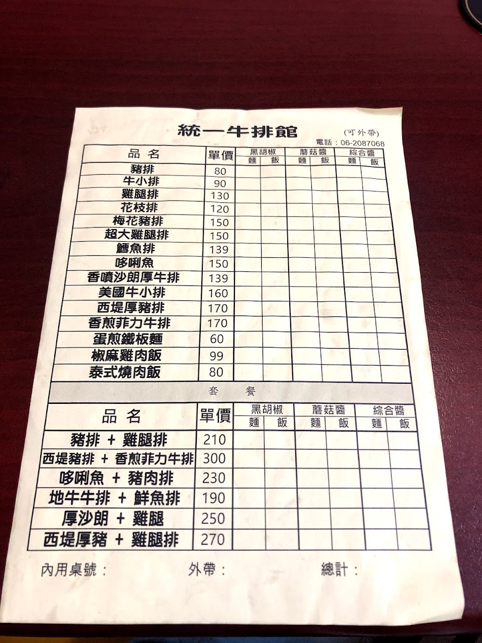 注意:僅收現金、店面廣告跟實際不太一樣,目前已沒有優惠,所以在餐點部分扣了一顆星,老闆要小心廣告不實。最新的菜單如附圖,有肉的主餐最便宜是豬排已要95元,重點不是貴不貴,是廣告有沒有誠實,不過客人看到菜單就知道價錢了。