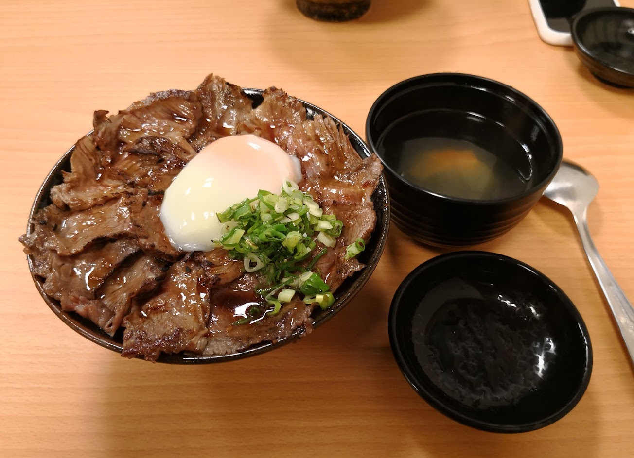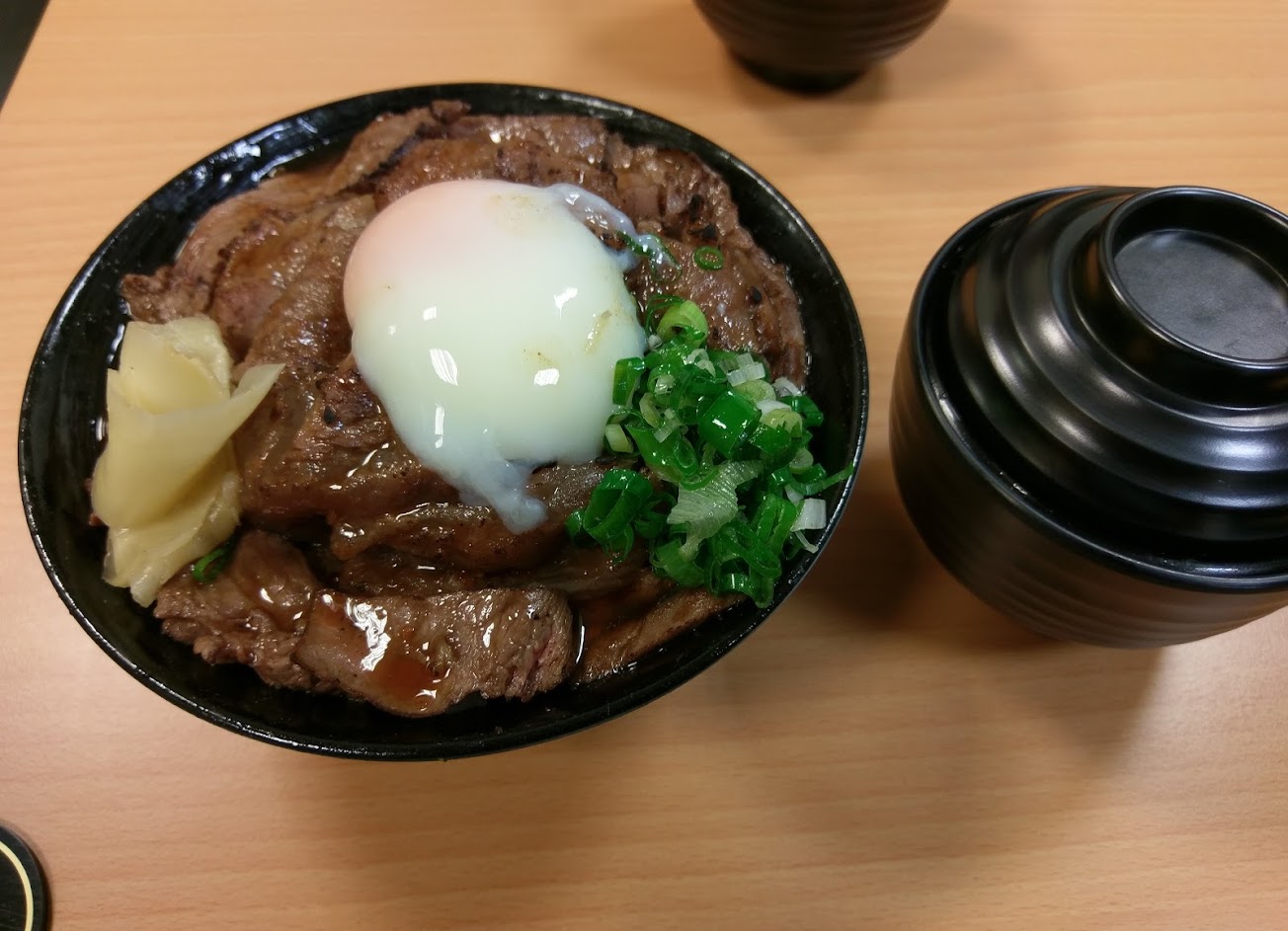 溫泉蛋好吃,不吃牛肉的朋友只能點霜降松阪豬丼。