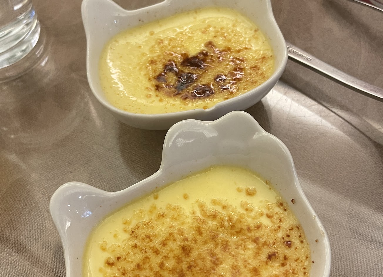 #甜點是烤布蕾,味道還可以,表面的焦糖分布不均,格外的好看,但某些部分是“冰”的口感,可能是還沒退冰完全,有點可惜