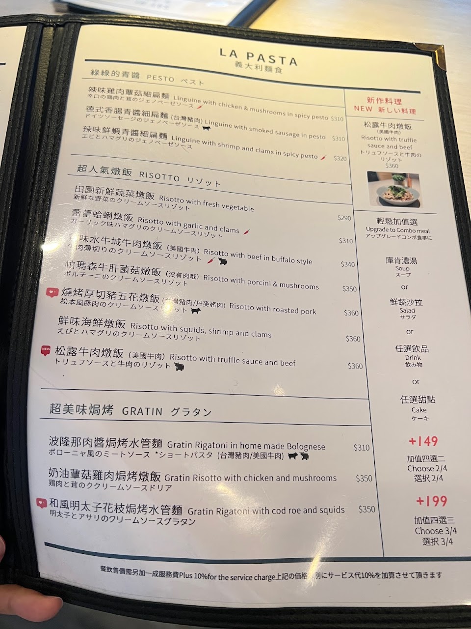 我們點的燉飯、義大利麵都好吃(味道都很入味). +149元有濃湯及飲料哦.