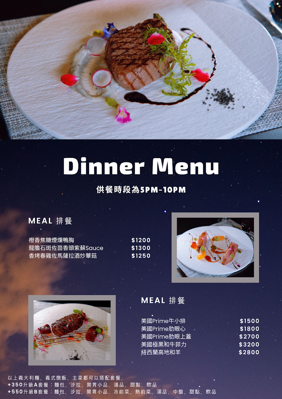 餐點是好吃的,但以排餐一份1500的價格只吃到一塊麵包一塊肉 覺得CP值很低。