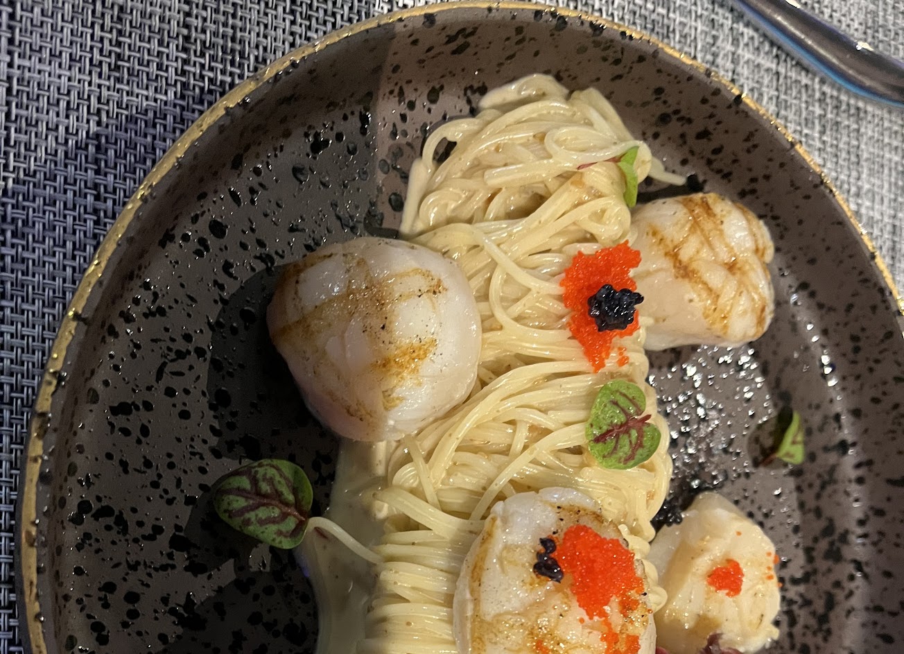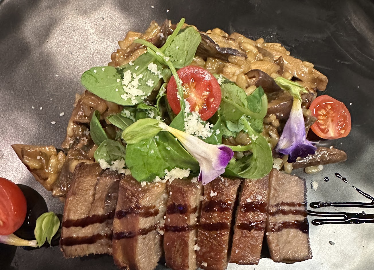 餐點番茄海鱸魚義大利麵是紅肉醬麵,對個人來說有些不太ok,黑松露松阪豬燉飯,好吃。上菜速度有衡量客人吃前菜的時間,後面有些趕送主菜?。服務員會在上菜時為客人解說。