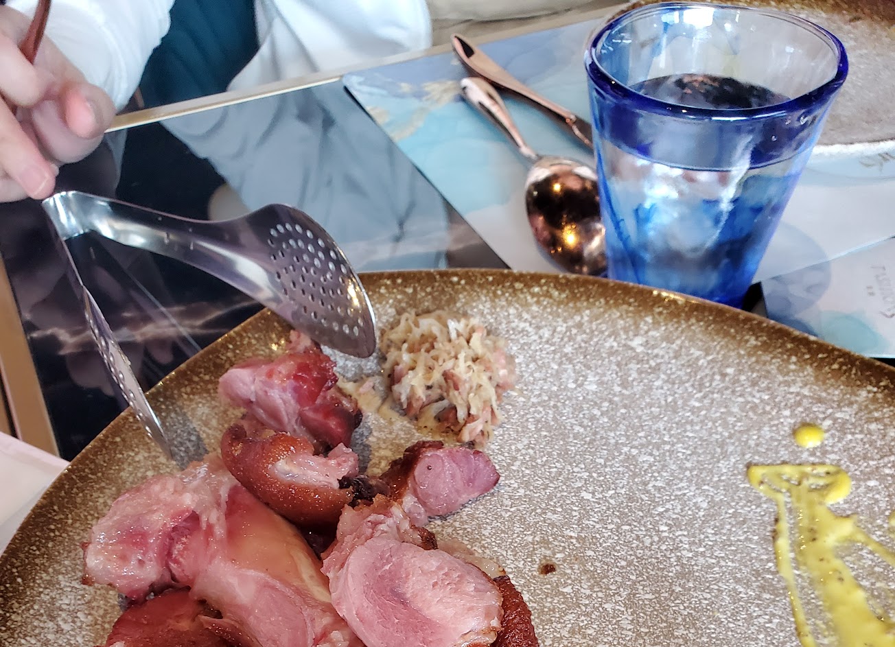 另外桌邊服務生有點膽怯,得知是新進人員,我能感受到他舉手投足的不知所措。出菜速度很快,但是菜色我點很多,桌子擺不進去了,體現出安排位置的缺點。