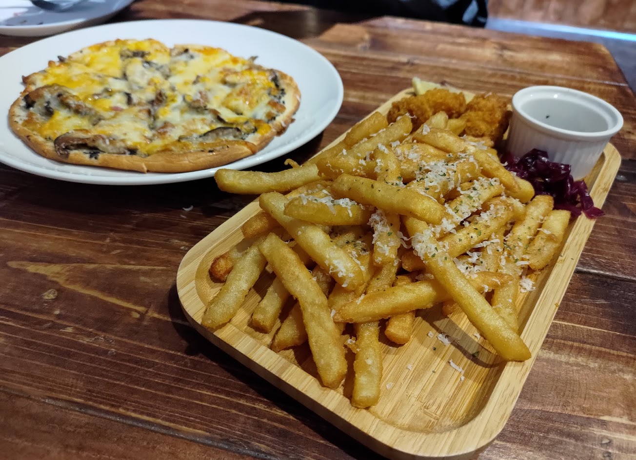 十分不推薦的是披薩 熱度、起司含量以及用料大小以及橄欖油用量 都有待加強