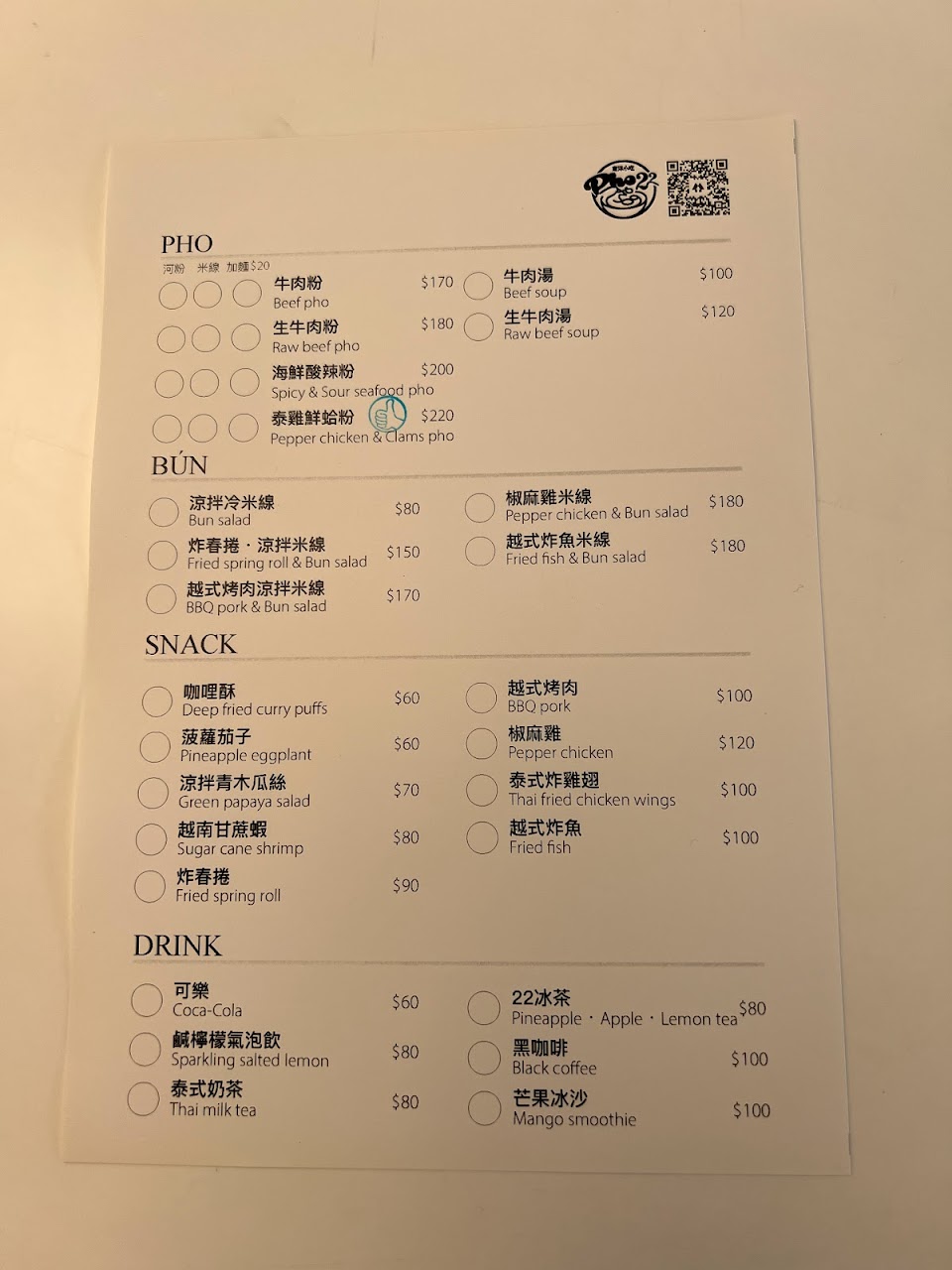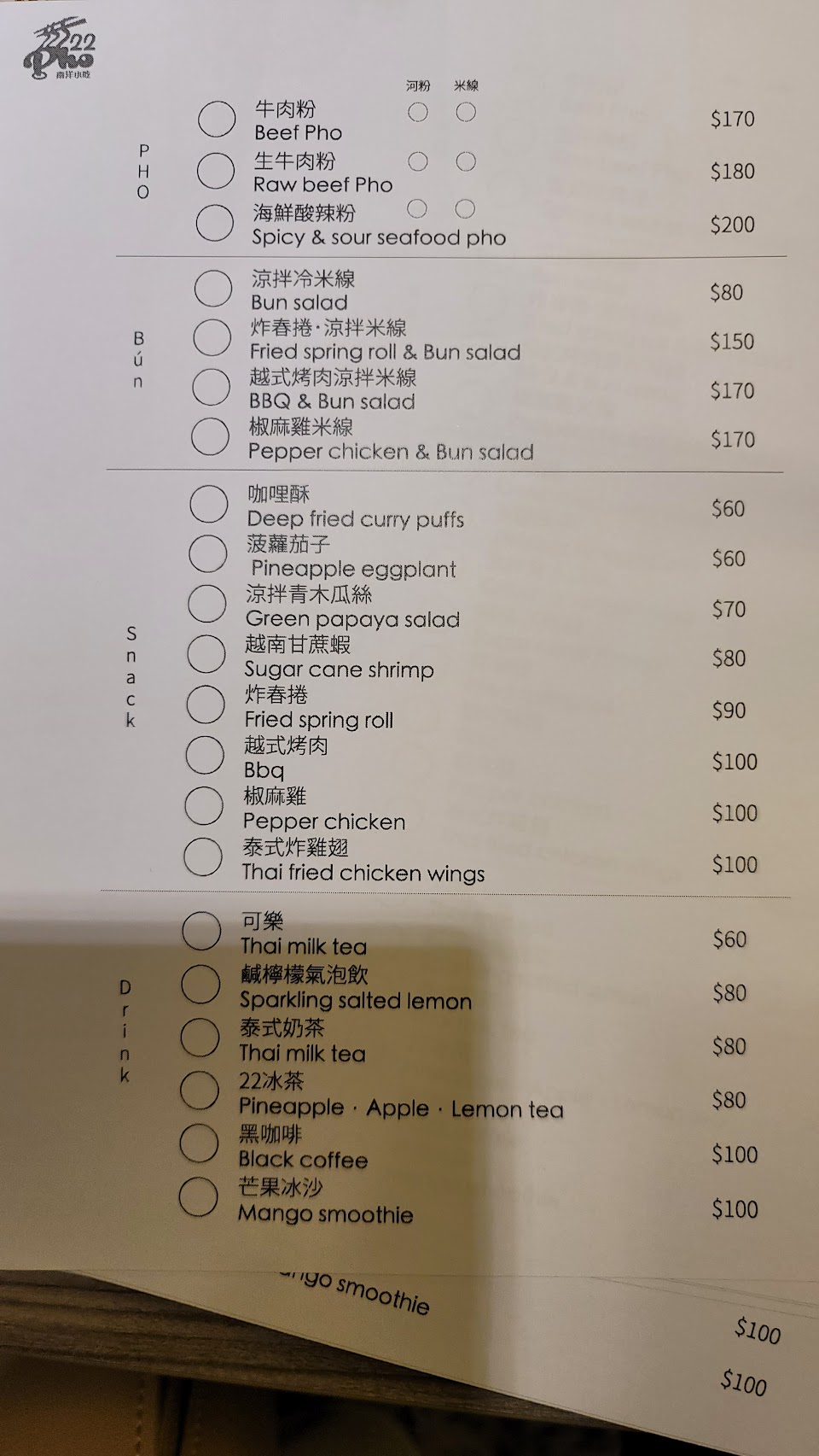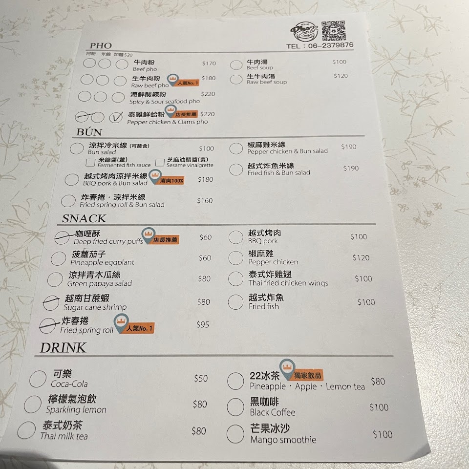 2024最新在地推薦餐廳的菜單_Phở22河粉南洋小吃的菜單、圖片