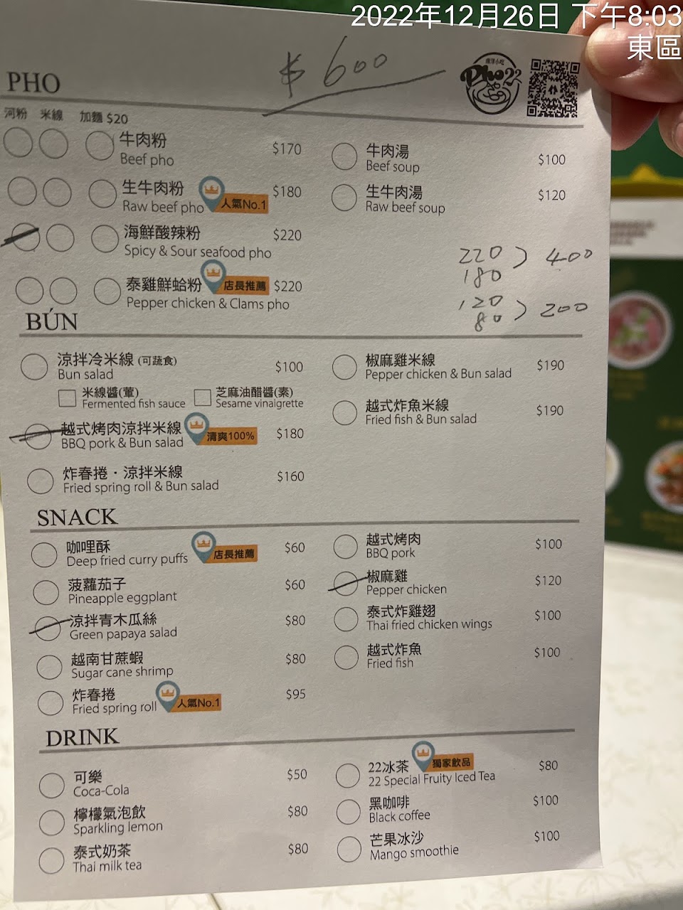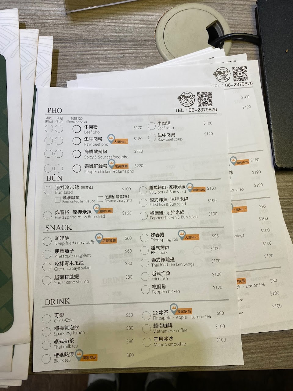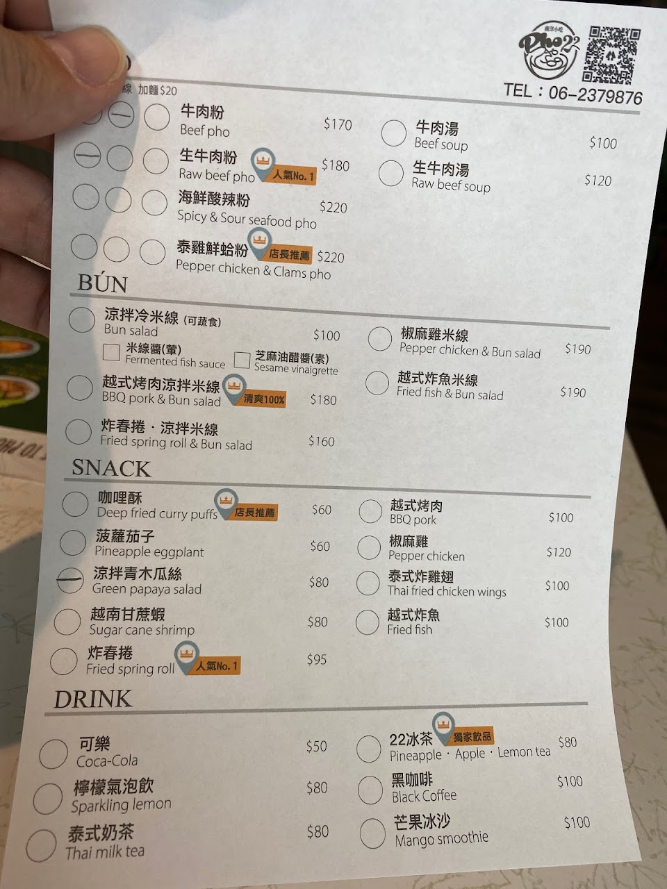 2024最新在地推薦餐廳的菜單_Phở22河粉南洋小吃的菜單、圖片