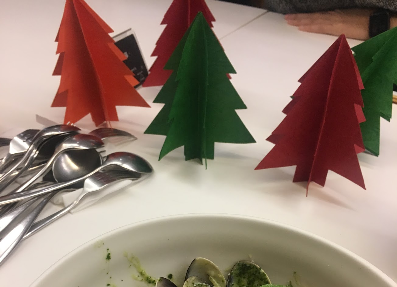 空間設計很棒、非常舒適,但因為是週六光顧,店裡的音樂聲跟客人交談的聲音大到我們必須加點下午茶換位子。青醬蛤蜊義大利麵好吃,但是口味太鹹,無法吃完。下午茶的甜點蛋糕出乎意料的好吃。