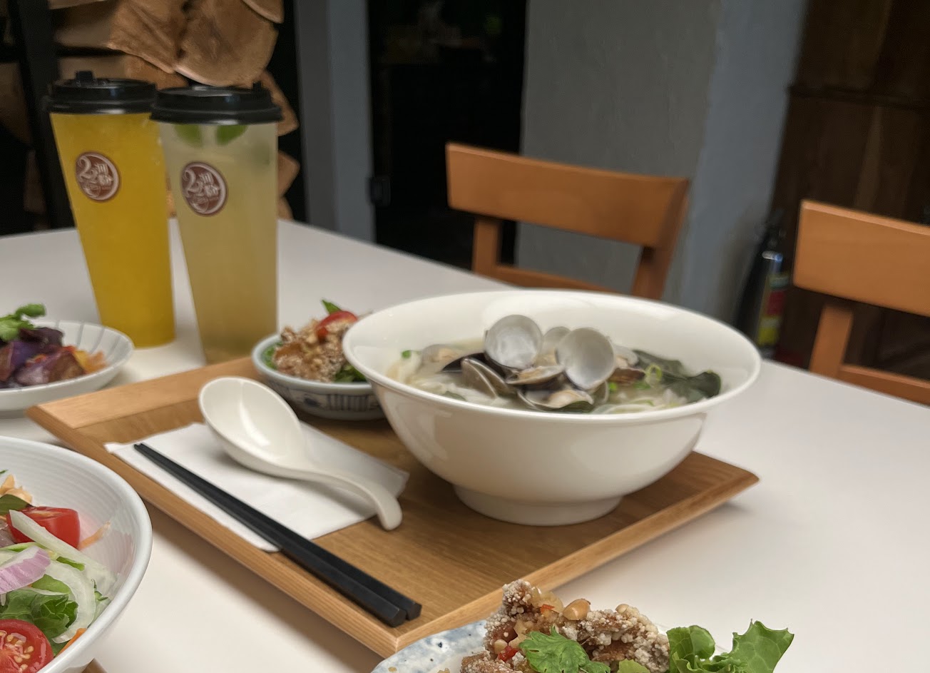 ?泰雞鮮蛤粉:跟以往印象中的越南河粉完全不一樣,湯底是用蛤蜊熬出來,非常鮮甜又清爽!就算是熱熱的湯也不會有負擔。