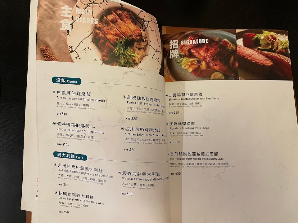 ?沃野18菜色是以義式料理為主打,除了可以選擇單點外也有多人套餐型態可選擇,餐點除了義式料理外,更特別研發出台義融合的特色餐點,想要給大家一個對於義式料理的全新體驗。