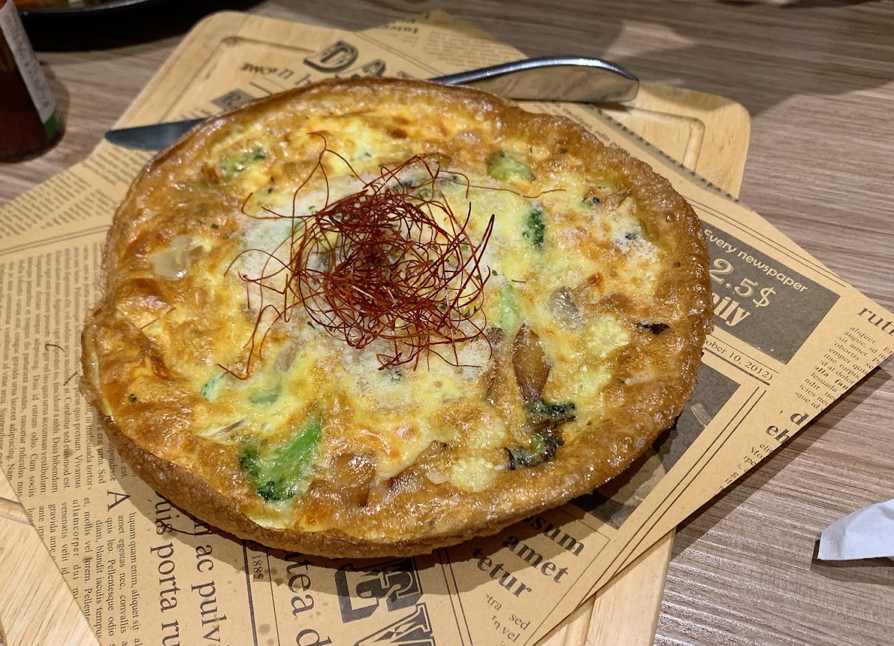 餐點好吃烘蛋很大份,但肚子很餓不建議前往用餐,等餐時間稍長。內用有飲料(檸檬紅茶、綠茶)和麵包(法式軟法、小餐包)無限享用