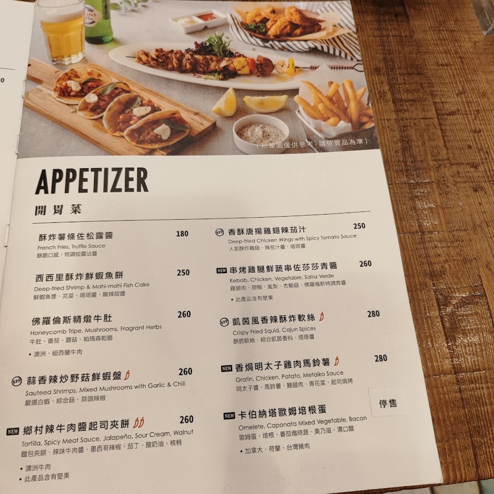義式料理為主,從前菜到主餐,飲料,甜點都可單點!披薩很好吃,是薄脆的披薩,西班牙海鮮燉飯普通,稍鹹且油膩,牛排品質普通,咖啡飲ㄚ還不錯!假日最好事先預訂,位於南紡A1,算還好停車