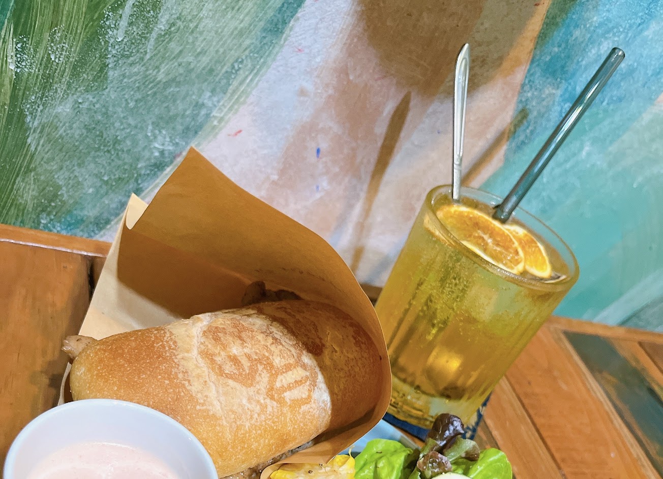 今天點了堡類,擺盤蔬果很新鮮,醬料很特別,