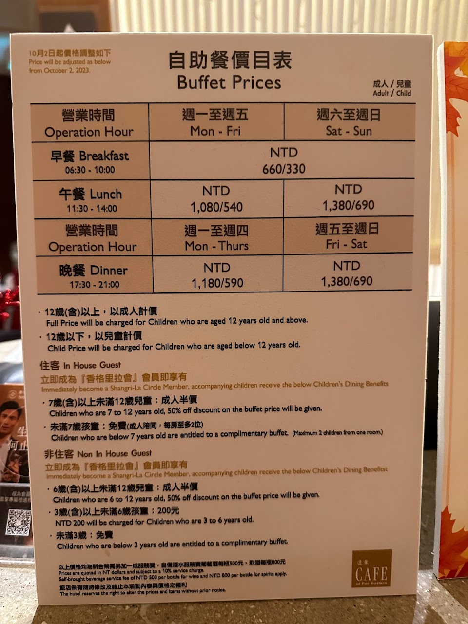 | 星期六 | 06:30–10:30 11:30–14:00 17:30–21:00 |