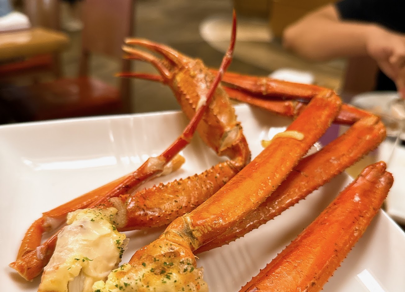 而「清蒸松葉蟹」、「焗烤松葉蟹」表現如上文所說,蟹肉無法直接分離,且在入場後先得到一盤松葉蟹後,再點餐等了一小時才拿到,對打著「松葉蟹吃到飽」這樣的宣傳顯然是有點問題。