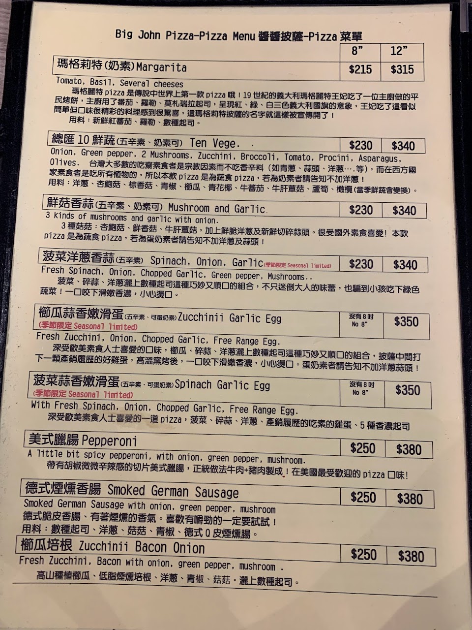 2024最新在地推薦餐廳的菜單_醬醬披薩 Big John Pizza的菜單、圖片