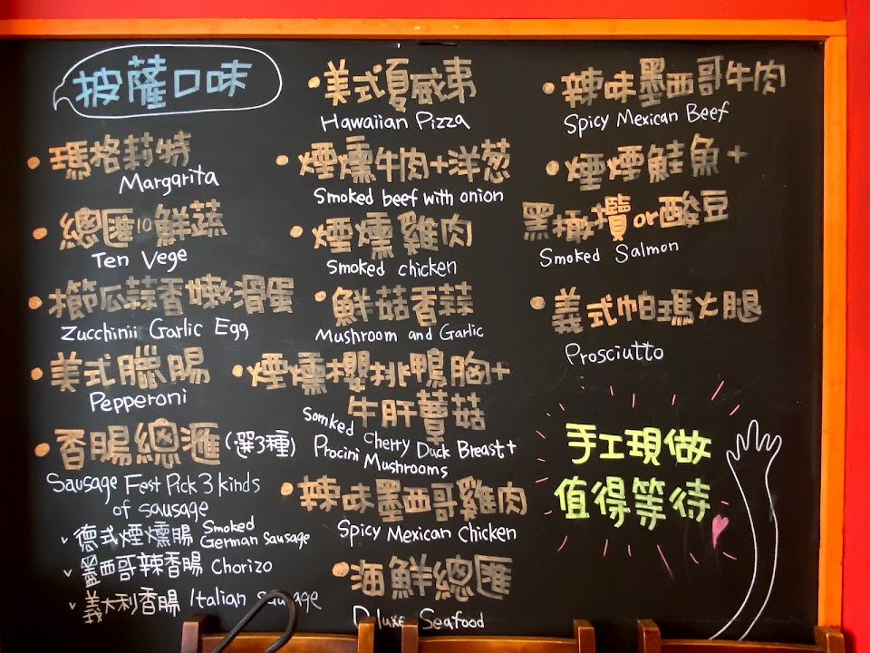 老闆是英國人但pizza有多種國家的特色pizza,另外有12吋的pizza可以選,價位落在300多,一個大男生絕對可以吃的飽,很多店只賣9吋,買一個吃不飽買兩個又覺得太貴,