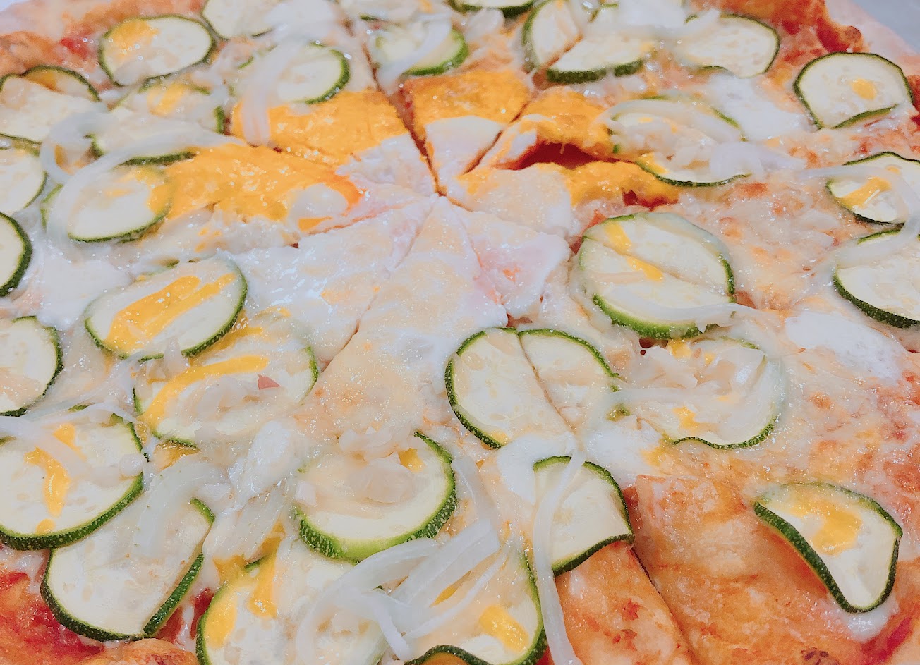 十蔬Pizza充滿蔬菜的清甜搭配烤的香酥餅皮,味道—度讚!
