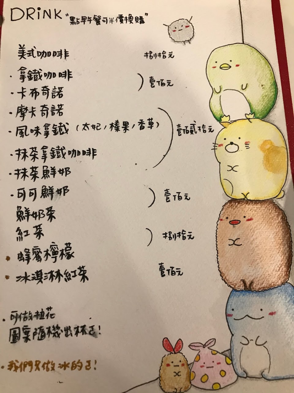 菜單Menu是手繪感,充滿童趣
