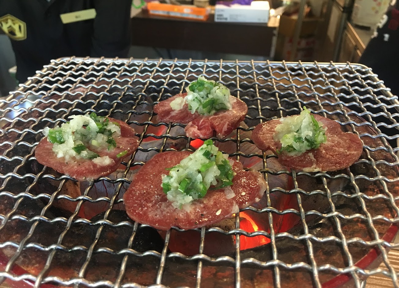 切的較薄片的牛舌,口感嫩嚼帶香的。稍微烤炙後,加上鹽蔥的香氣更提味好吃,shojo的牛舌是屬於薄片的,本身已經有撒上胡椒鹽、蔥花,個人蠻喜歡他們家牛舌,而且cp值很高,肉的片數分量很足夠。