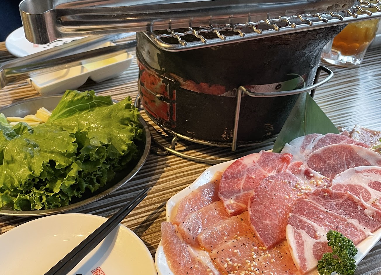 疫情期間,防疫有落實,座位採取梅花座,並且沒有烤爐,皆由店員代烤,以單點的店來說,算是中高價位,如果想吃飽,人均大約1000,有點了一個打卡20元的飯,沒有很多就小小一碗,上面的肉是滷肉,所以吃起來像是滷肉飯,牛肉部分還不錯,雞腿肉倒是很嫩,推雞腿肉,不過份量倒是很少,豬肉的部分,豬來了的肉我都覺得不好吃,很乾又柴,不推,飲品中規中矩,氣泡飲不錯,沒喝酒,店員都還蠻親切的,湯也蠻好喝的。