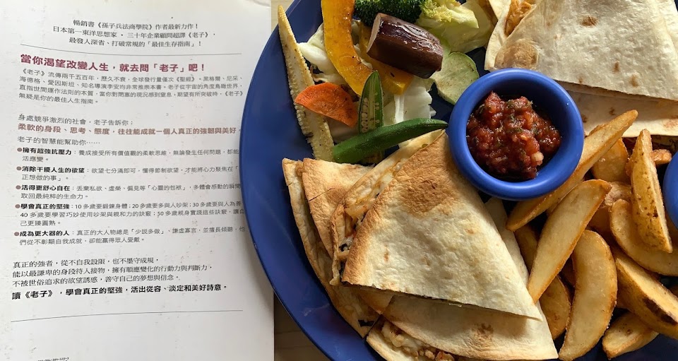 「辣味雞肉墨西哥烤餅」:搭配炸的外酥內綿的薯條,還有莎莎醬。整套不囉嗦就是好吃!